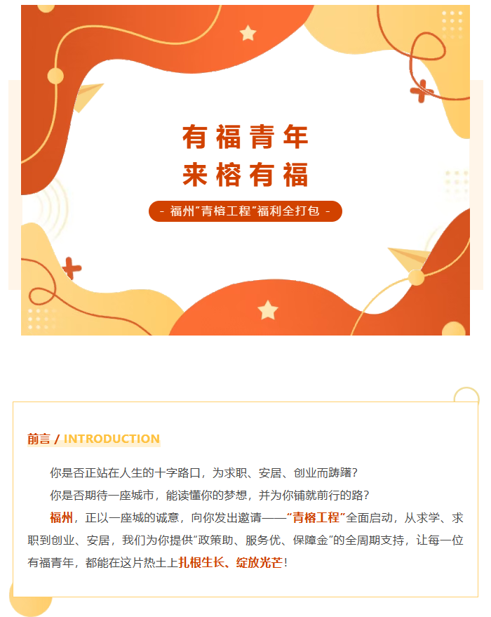 【政策法规】 有福青年 来福有礼|福州“青榕工程”,就业创业安居福利全打包!(一)