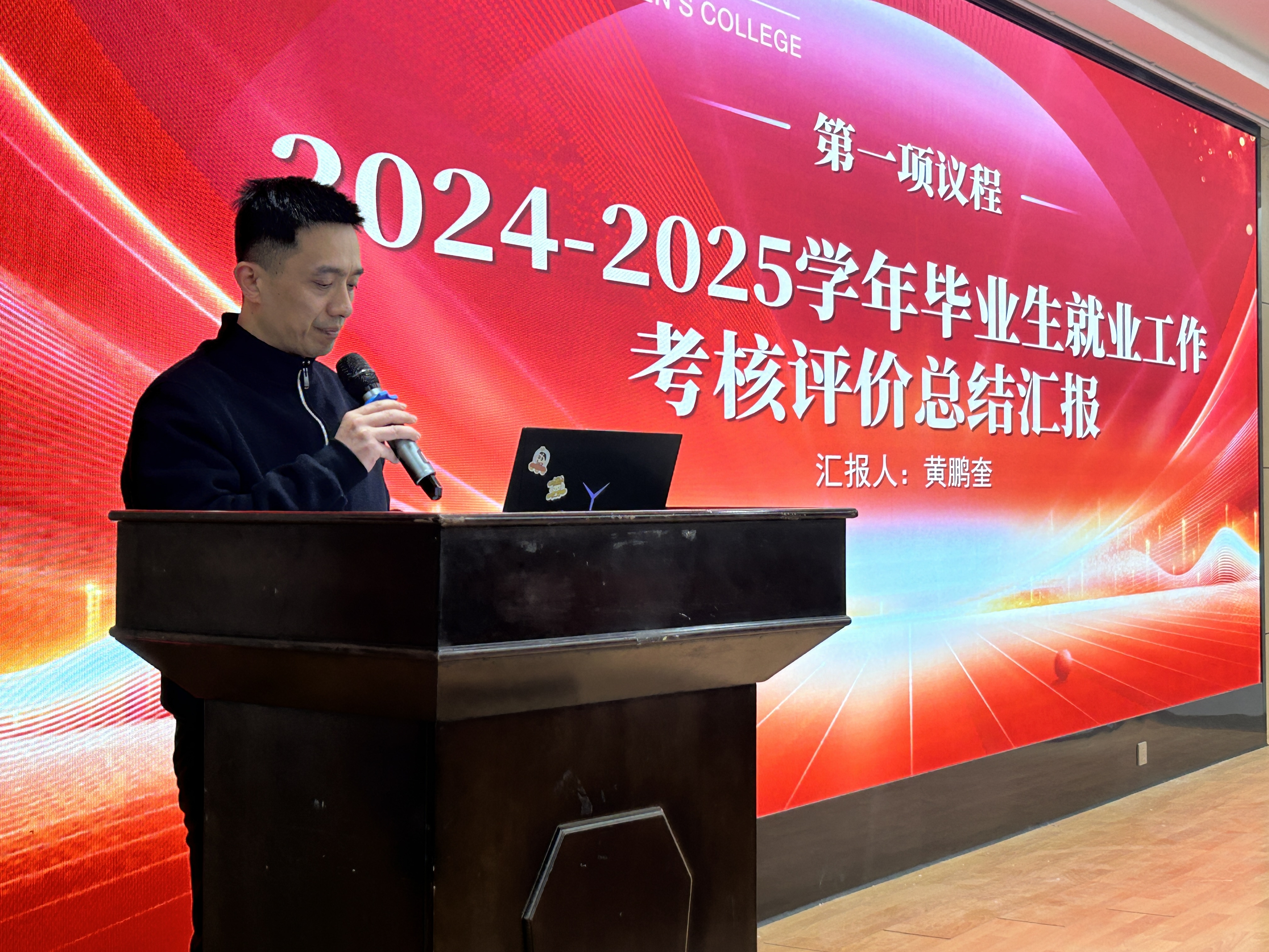 招生就业处处长黄鹏奎围绕毕业生就业去向、就业工作质量和考核评价等方面,汇报了2024-2025学年毕业生就业工作整体情况,通过详实数据展现了工作成效。