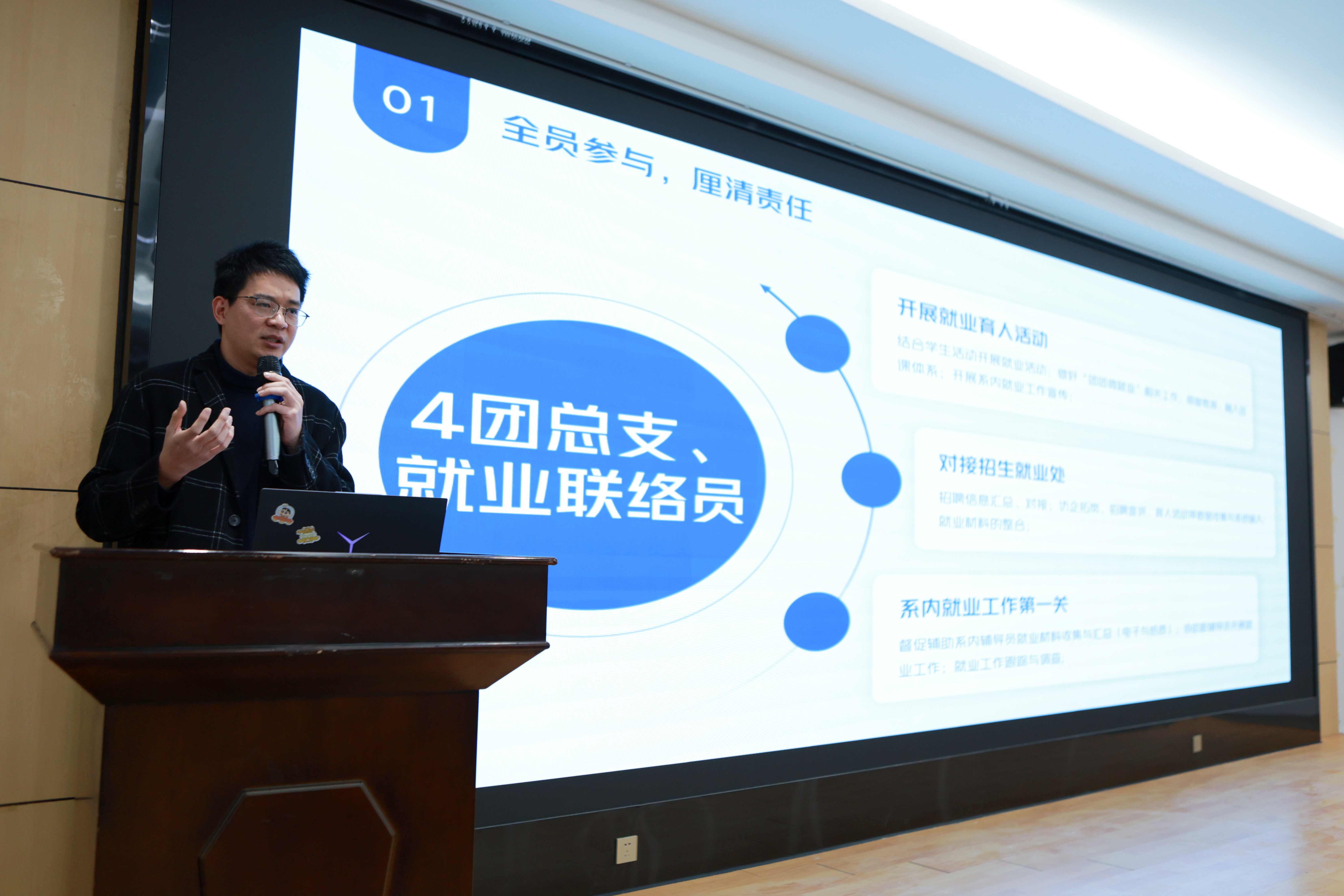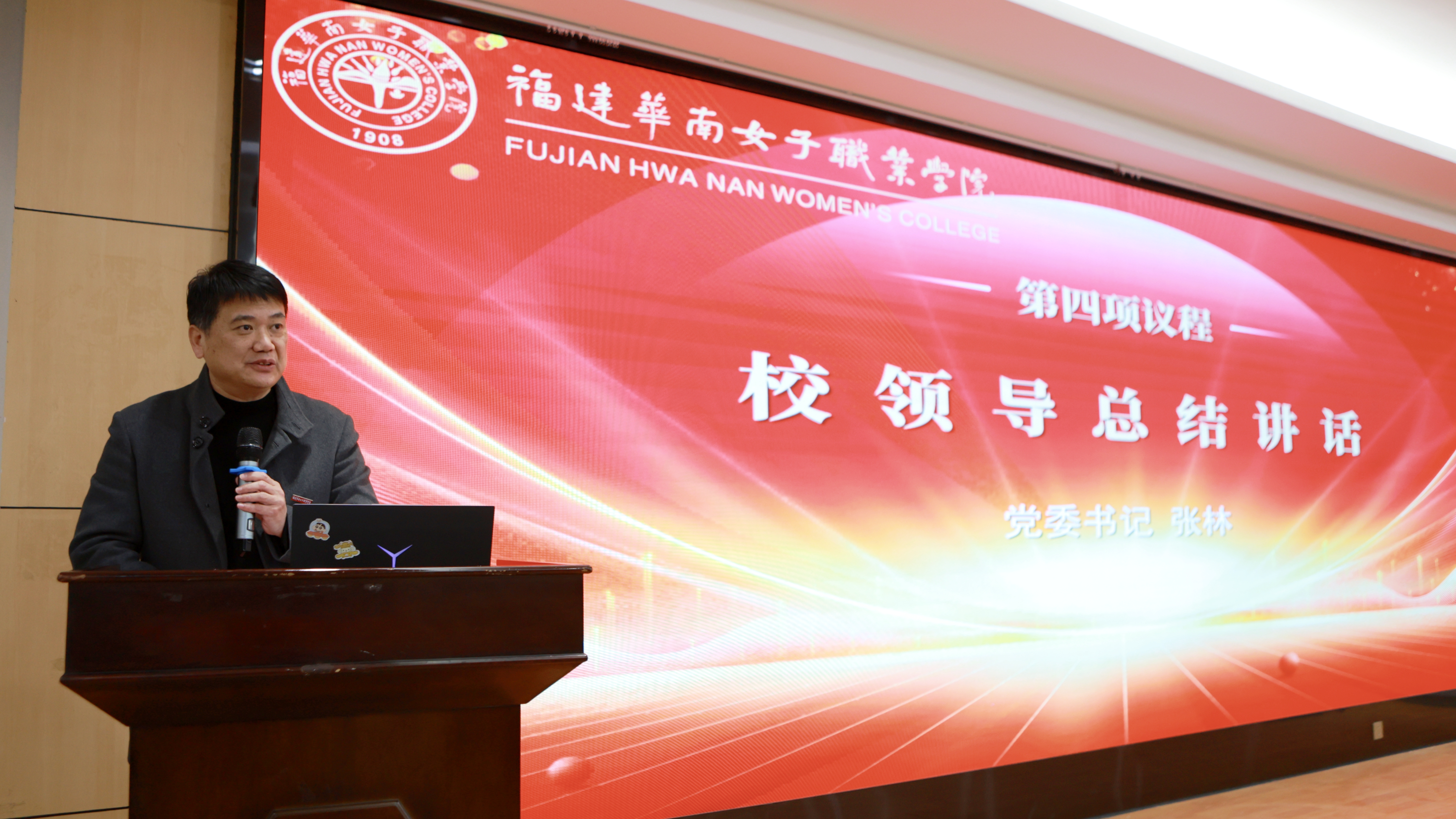 党委书记张林在总结讲话中向受表彰的集体表示祝贺并肯定了奋战在就业一线的教职工一年来的辛勤付出。他强调,就业工作应紧扣“全、准、细、暖、实”五字方针推进:“全”即全覆盖、全过程,全员开展就业工作;“准”强调精准掌握学生情况,提升就业工作实效;“细”要求发挥全系力量,做好就业精细化帮扶;“暖”体现加强服务指导,帮助困难学生就业;“实”则重在夯实工作基础,切实加强工作落实。最后,他从深化思想认识、强化工作联动、优化资源供给、精准指导服务等方面对推进2026届毕业生就业提出了具体工作要求,号召全校以更饱满的热情和务实的举措推进毕业生就业工作,为培养新时期国家有用人才、服务福建福州经济社会发展作出贡献。