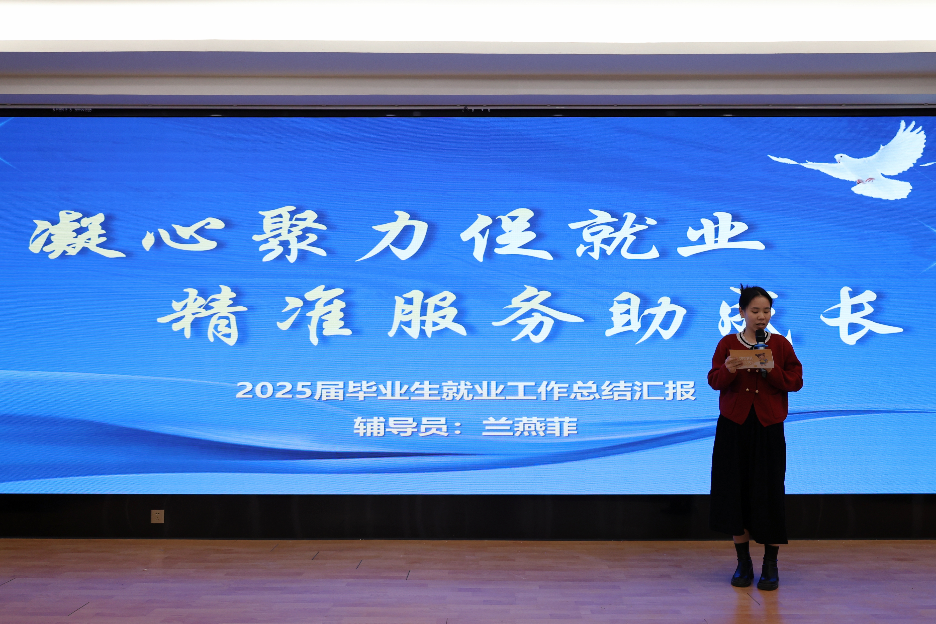 2026年1月7日,我校在学术报告厅召开2024-2025学年毕业生就业工作表彰大会。校党委书记张林、校长任建红、副校长吴岚葭,招生就业处全体成员,各系书记、系主任、专业主任、就业指导老师及全体辅导员出席会议,共同回顾年度就业成果,展望新阶段工作方向。