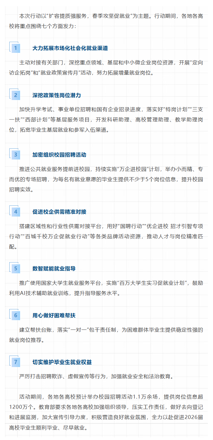 【新闻热点】 教育部启动2026届高校毕业生“春季促就业攻坚行动”